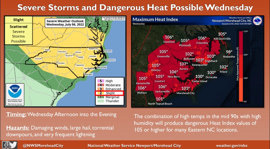 Our office is monitoring the likelihood of severe weather across Eastern NC for tomorrow. Forecast details for Beaufort County include: