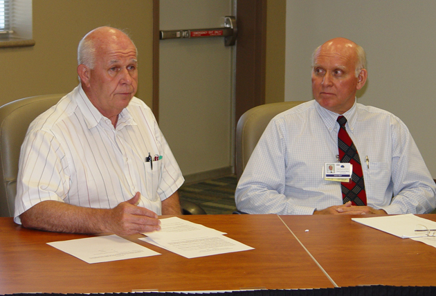 BRHS hospital board member Hood Richardson, left, shares his thoughts on appointing Susan Gerard as full-time CEO, as the new CFO Richard Reif, right, listens.| BRHS replaces Chief Financial Officer | Regional Health System, Governing Beaufort County | Beaufort County Government's General Meeting Agenda: Monday, October 4, 2010 |