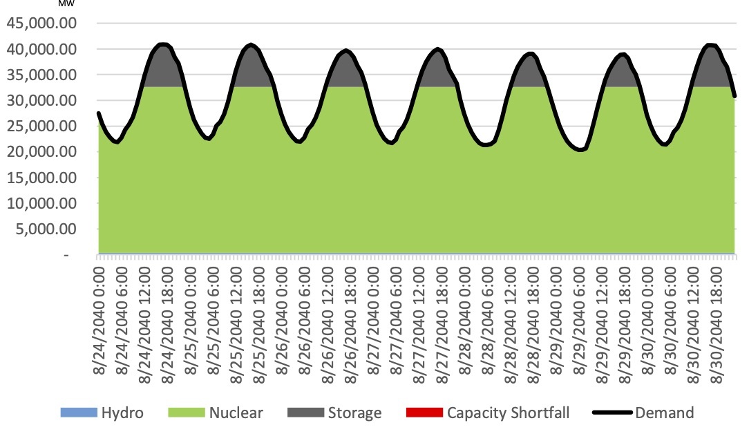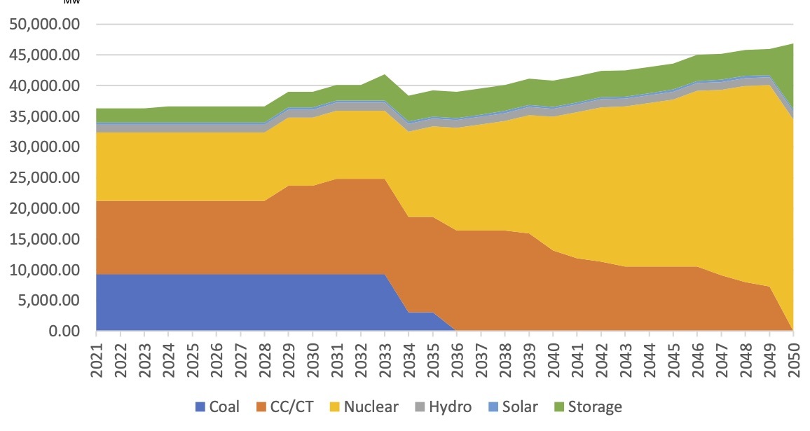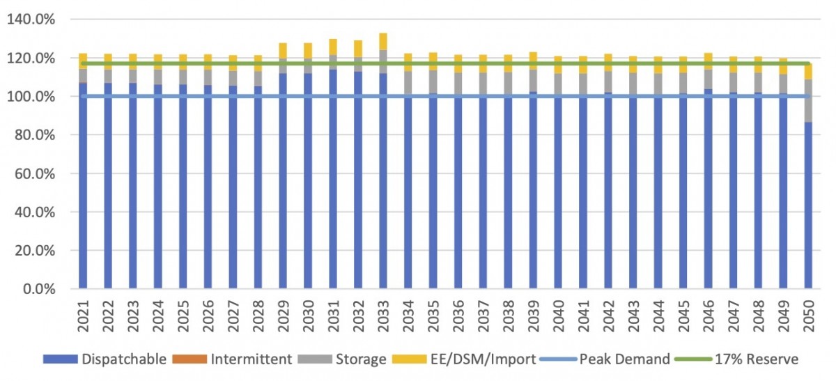 The model LCD portfolio would have enough firm dispatchable capacity to meet peak demand every year till 2050, at which point adequate storage capacity - charged using reliable nuclear, not unreliable wind or solar - would provide the needed power.
