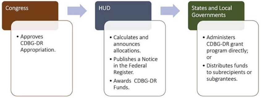 Flowchart of Community Development Block Grant Disaster Recovery (CDBG-DR) funds