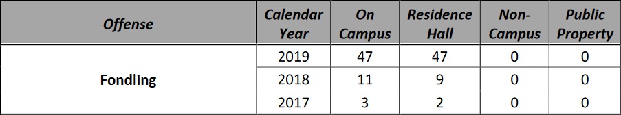 "fondling" statistics on Western Carolina University's 2020 report, one finds a 2019 rate that is wildly disproportionate to that of previous years.