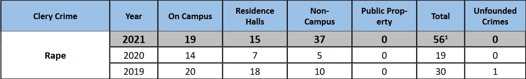 Like their peer institutions across the nation, the 16 universities in the UNC System published their 2022 Clery reports by October 1 of this year. Each new report provides at least three years of data (2019-2021) across 21 criminal categories. For the purposes of this article, the authors looked at six of those categories at three representative UNC-System schools: UNC-Chapel Hill (the flagship), UNC Charlotte (an urban institution), and Western Carolina University (a rural one). We also examined previous years' Clery reports, which allowed us to look for data trends beginning in 2016, well before the dawning of the #MeToo movement and any attendant surges in campus sex-crime reporting.