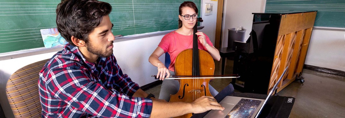 Howard and Roller met in the School of Music's composition studio, where students work weekly with composition professors.