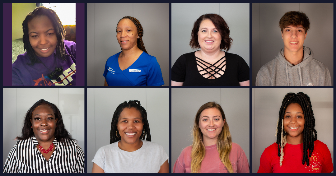 (Top, left to right) Kristin Boone, LaShona Dubose, Lindsey Duke, and Blake Fuell. (Bottom, left to right) Leslie Morning, Latisha Nelson, Macey Quidley, and LaQuisha Woolard.