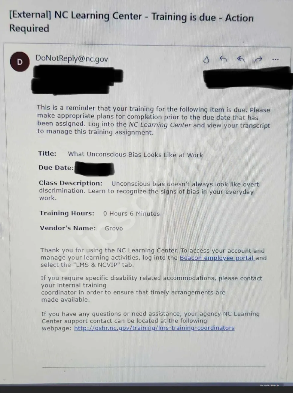 In the old Soviet Union, there were political commissars everywhere, making sure everyone was "politically correct". Far left Governor Roy Cooper has brought this concept to NC state government, but using the internet for required brainwashing sessions in the "woke" ideology. Whistleblowers have come forward with the details as described in this article: