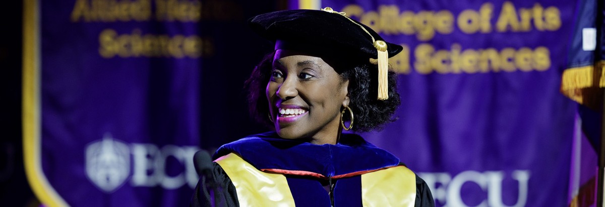 Holding an undergraduate degree from the University of North Carolina, an ECU master's degree, and a doctoral degree from N.C. State makes for some interesting conversations, especially around athletic events, she said.