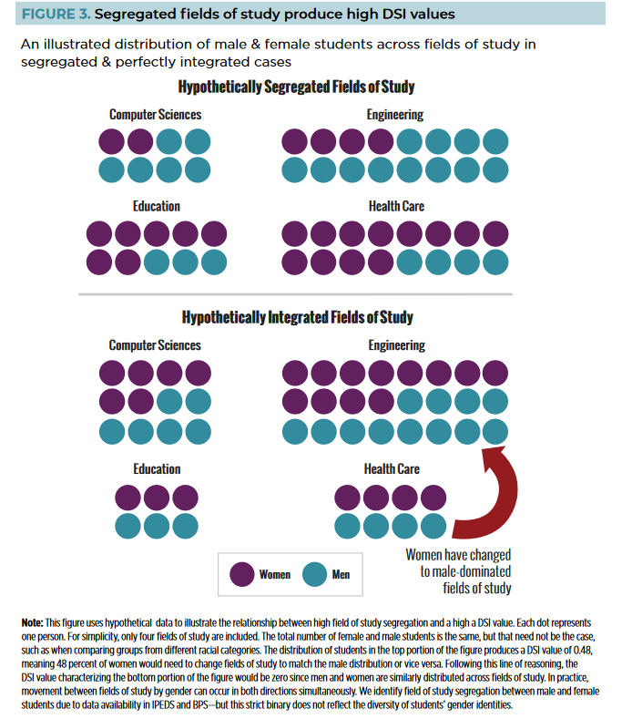 The reader will immediately notice two things. First, in the footnote of the figure, the authors apologize for using a strict gender binary that fails to honor "the diversity of students' gender identities." This is not consistent logic: Either there aren't enough women in engineering and computer science majors, or there exists such a plethora of gender-identity diversity that "binary"-based sex-segregation claims are meaningless. This report tries to have it both ways.