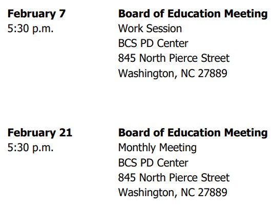 BCS Calendar February 2023 | Eastern NC Now