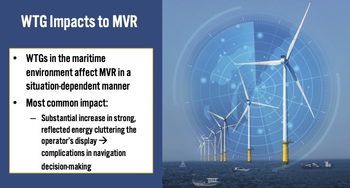 "Maritime search and rescue (SAR) assets rely on MVR to search for smaller boats as their primary targets in the conduct of ordinary SAR operations. A loss of contact with smaller vessels due to various forms of MVR interference could complicate MTS [Maritime Transportation System] operations, and is therefore particularly consequential when conducting maritime surface SAR operations in and adjacent to an offshore wind farm."
