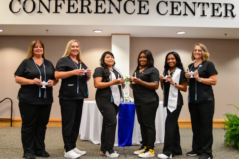 Washington, N.C.     The six graduates of Beaufort County Community College's practical nursing (PN) program celebrated completing their program through a pinning ceremony on July 12. The ceremony included a traditional lantern-lighting while graduates recited the practical nursing pledge.