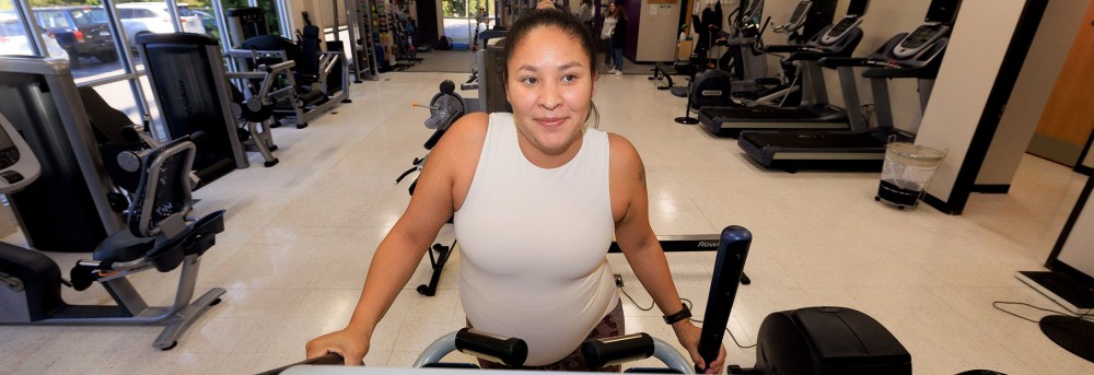Johanne Hyde exercises at the ECU Fitness, Instruction, Testing and Training Building. (Photos by Rhett Butler)