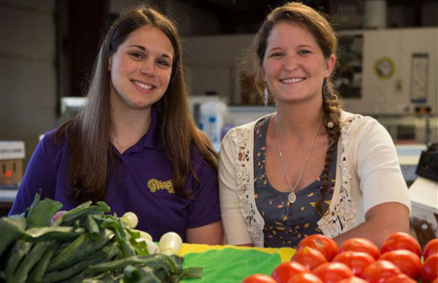 New ECU public health graduates Ashley Ronay, left, and Leah Mayo, right, worked on projects related to fresh fruits and vegetables in eastern North Carolina (Photos by Cliff Hollis).