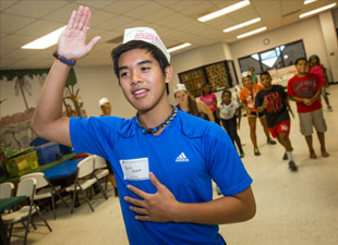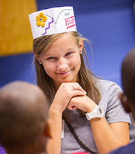ECU Honors College student Erica Korleski plays Red Light, Green Light with campers from the Boys and Girls Club. The ECU students were volunteering at the Boys and Girls Club as part of the Honors College annual day of service. (Photo by Jay Clark)