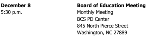 BCS December 2025 Board of Education Calendar