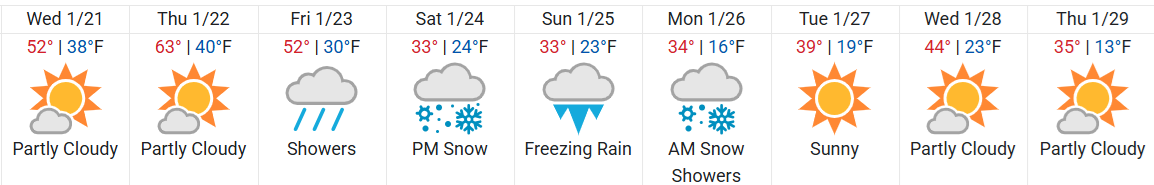 While we are expected to experience seasonal temperatures through Friday afternoon, our daytime highs are expected to be at or near freezing Saturday, Sunday and Monday, with windchills below 30 and nighttime lows in the upper teens to low 20s.