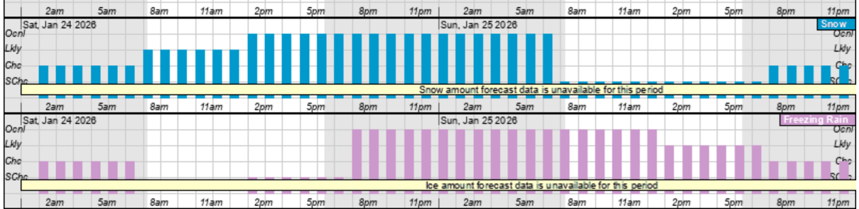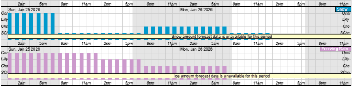 Sunday Snow (blue) and Freezing Rain (pink) Graphic